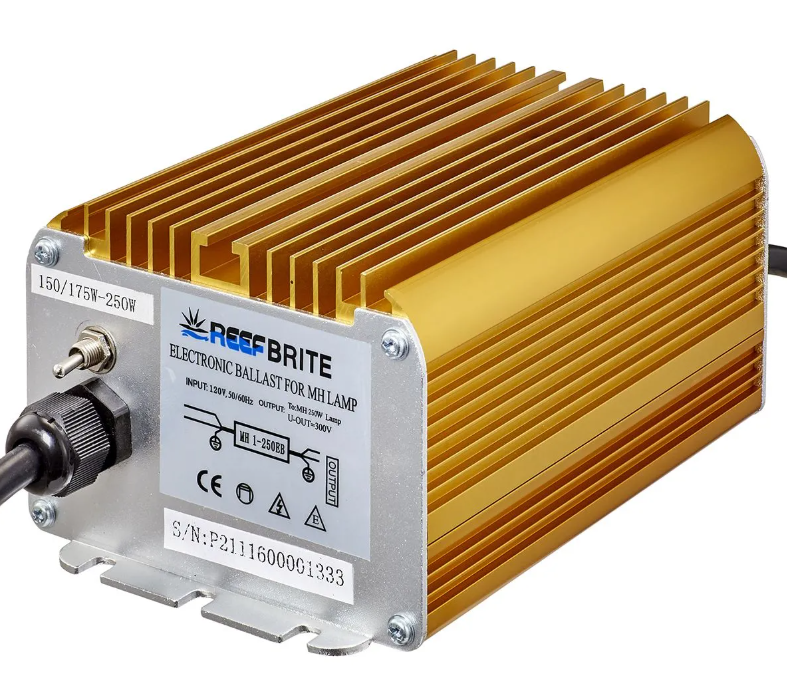 El balastro perfecto para lámparas colgantes de halogenuros metálicos Reef Brite y muchas otras, con capacidad de ajuste entre 150, 175 o 250 vatios, según la potencia de la bombilla.