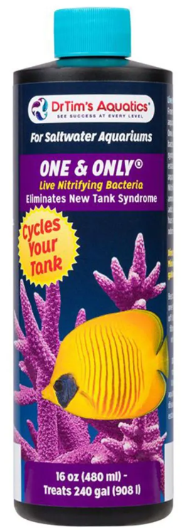 Las bacterias nitrificantes vivas One & Only del Dr. Tim para acuarios de agua salada se utilizan ampliamente en el mundo del acuario y pueden ayudar a prevenir problemas comunes en acuarios nuevos, a la vez que ayudan a estabilizar los existentes. El Dr. Tim es considerado una de las principales autoridades en bacterias nitrificantes marinas en sistemas abiertos y cerrados. One & Only contiene millones de bacterias nitrificantes vivas que ayudarán a establecer rápidamente un filtro biológico en su acuario, permitiéndole añadir peces casi de inmediato.